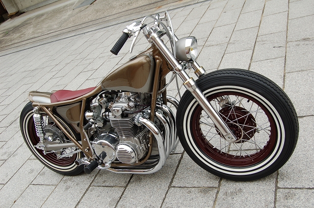 of 23″ wheels (26″ is also possible), a Led Sled rear fender, a Biltwell